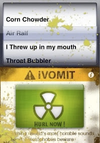 iVomits Möbile, como su propio nombre indica es una aplicación que permite recrear distintos tipos de vómitos en la pantalla de tu iPhone, por si quieres hacer el cochinote durante un rato.
